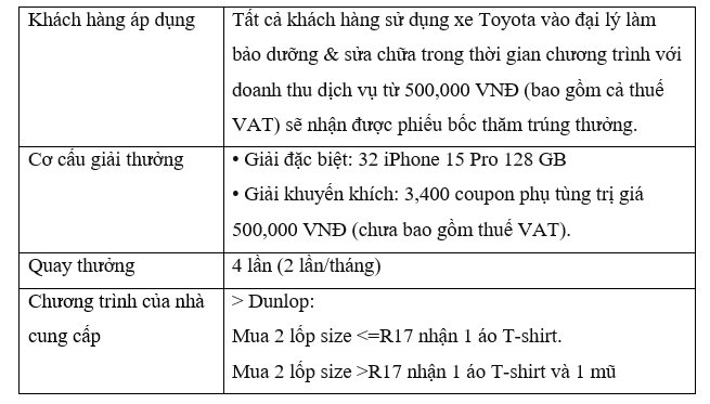Công ty TNHH Toyota Hải Phòng giới thiệu Chương trình Khuyến mại Dịch vụ 2024. Thời gian: Từ ngày 1/8 – 30/9/2024.