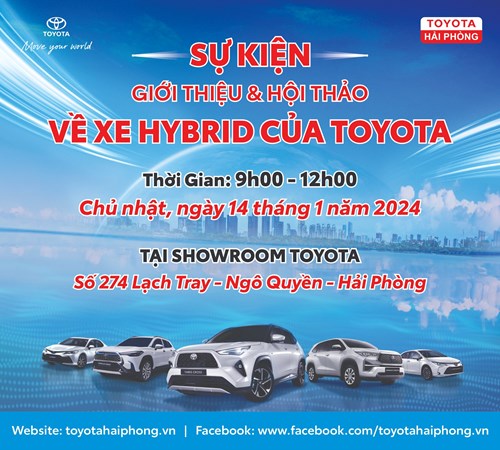 Kính mời quý khách hàng tham dự sự kiện "𝐆𝐢𝐨̛́𝐢 𝐭𝐡𝐢𝐞̣̂𝐮 𝐯𝐚̀ 𝐇𝐨̣̂𝐢 𝐭𝐡𝐚̉𝐨 𝐯𝐞̂̀ 𝐱𝐞 𝐇𝐲𝐛𝐫𝐢𝐝 𝐜𝐮̉𝐚 𝐓𝐨𝐲𝐨𝐭𝐚" tại Toyota Hải Phòng