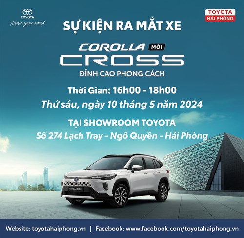 Thời gian : 𝟏𝟎/𝟎𝟓/𝟐𝟎𝟐𝟒, từ 16h - 18h Toyota Hải Phòng sẽ tổ chức Lễ ra mắt 𝐂𝐨𝐫𝐨𝐥𝐥𝐚 𝐂𝐫𝐨𝐬𝐬 𝟐𝟎𝟐𝟒 với rất nhiều những hoạt động thú vị: