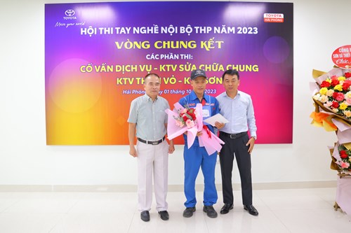 Ngày 1/10/2023 Toyota Hải Phòng đã tổ chức thành công vòng chung kết hội thi tay nghề nội bộ năm 2023. Đây là cuộc thi được Toyota Hải Phòng tổ chức thường niên với mục tiêu tạo ra sân chơi kỹ thuật chuyên nghiệp cho toàn bộ CBNV của Toyota Hải Phòng. Các Cố vấn dịch vụ, KTV các bộ phận chuẩn đoán sửa chữa bảo dưỡng xe, KTV sửa chữa thân vỏ xe, KTV sơn xe, đã được đào tạo lý thuyết bài bản, được chứng thực về các kỹ năng tư vấn, tay nghề thực tế. Tất cả không ngoài mục đích nâng cao tay nghề, cập nhật kiến thức công nghệ mới nhất, để đáp ứng tốt các yêu cầu khắt khe nhất trong việc bảo dưỡng sửa chữa xe của Quý vị Khách hàng. Dưới đây là những hình ảnh từ vòng chung kết hội thi thay nghề Toyota Hải Phòng năm 2023.